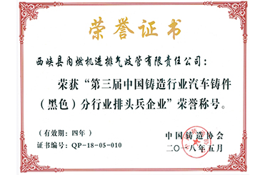 第三屆中國鑄造行業(yè)汽車鑄件(黑色)分行業(yè)排頭兵企業(yè)