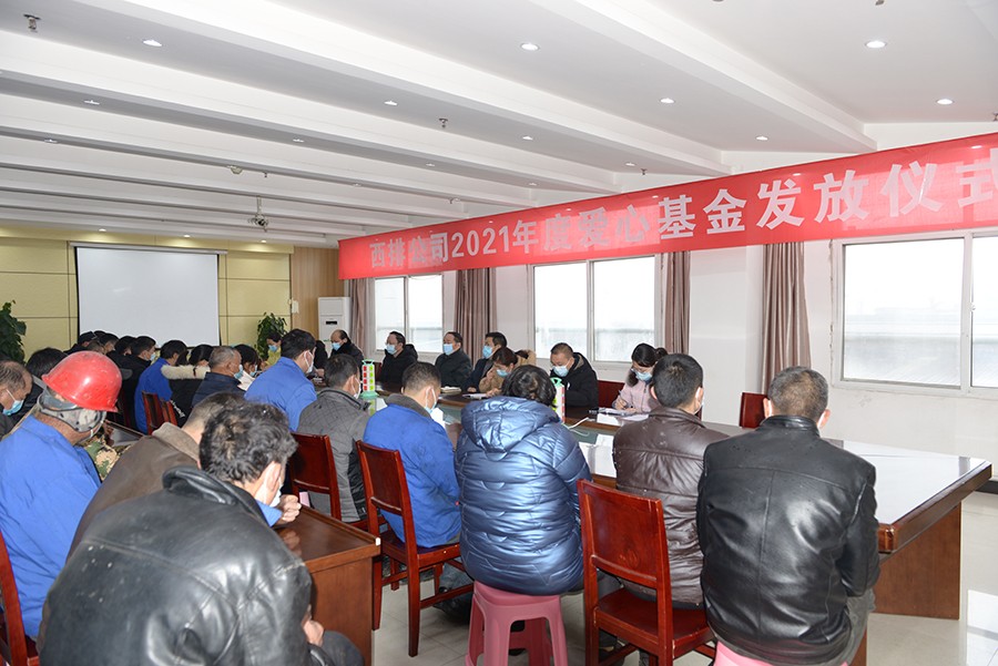 1月24日上午,西排公司2021年度愛(ài)心基金發(fā)放儀式在5樓會(huì)議室隆重舉行。董事長(zhǎng)程武超、總經(jīng)理程景勝、工會(huì)主席、財(cái)務(wù)副總劉振江、生產(chǎn)副總方顯君、工會(huì)副主席杜平、工會(huì)經(jīng)費(fèi)審查委員會(huì)主任王靜及部分理事出席會(huì)議。